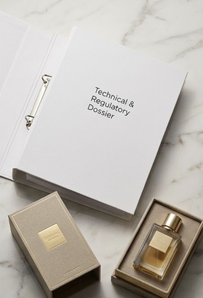 Essential documentation for marketing a perfume.